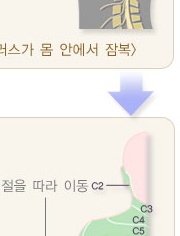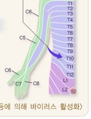 - 주로 신경을 따라 띠 모양으로 퍼지며
